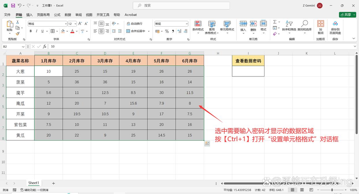 1、打开需要设置的Excel表格,选中需要输入密码才显示的数据区域,按【Ctrl+1】打开“设置单元格格式”对话框。