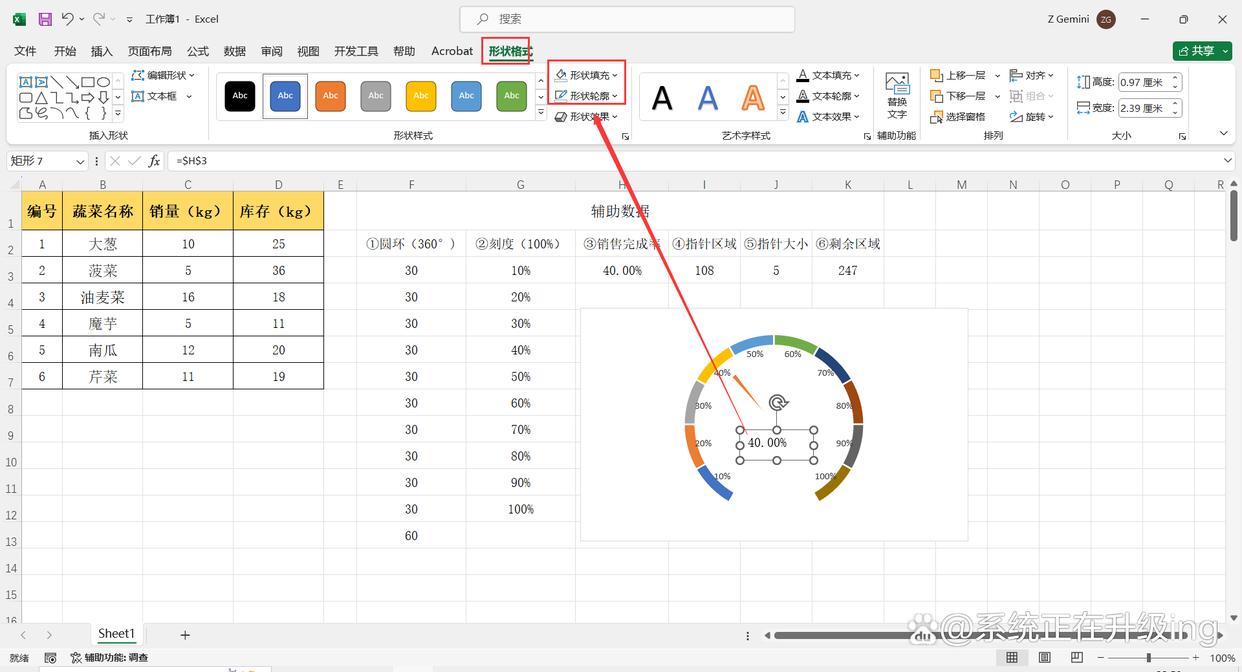 - ④指针区域:=H3*270,即:销售完成率*(27*10)。