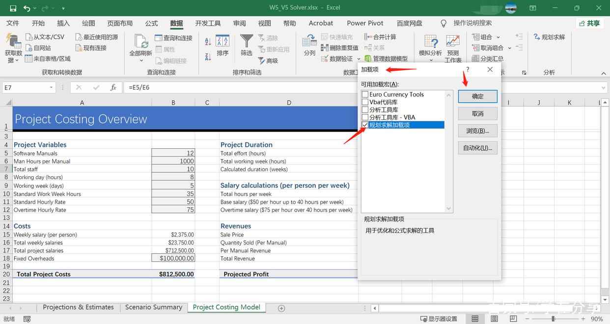 在Excel中有一个工具“单变量求解”(Excel的单变量求解,快速计算含公式的目标值所对应的变量!),它仅允许我们输入一个变量,而无法实现多个变量的求解,因此我们在此例中使用“规划求解”这一工具。