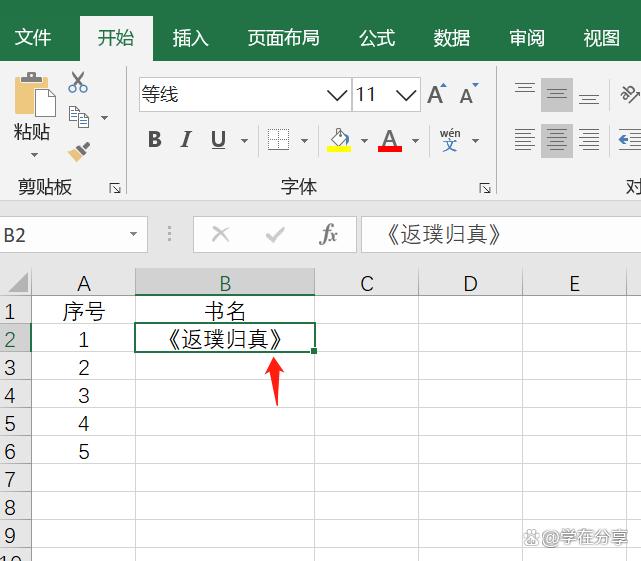 输入书名按Enter键,单元格会自动给书名添加书名号。这里我们看到实际上单元格里面的内容只有书名,而并没有我们之前手动输入方式的书名号。