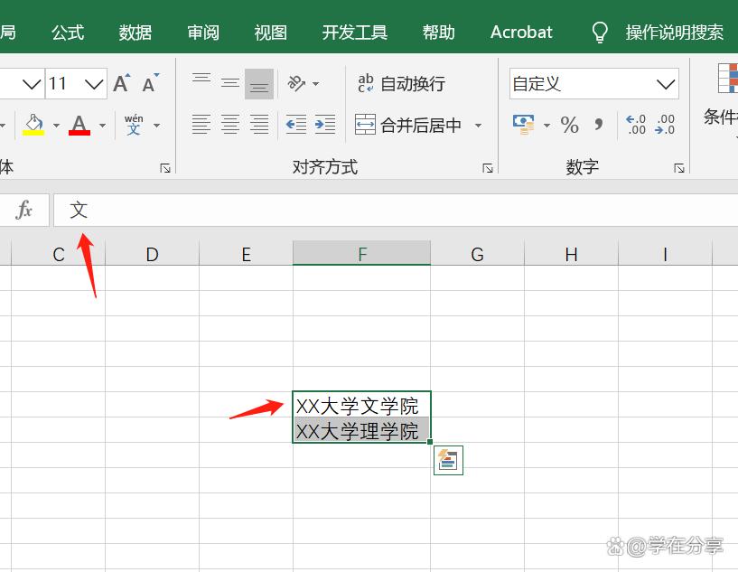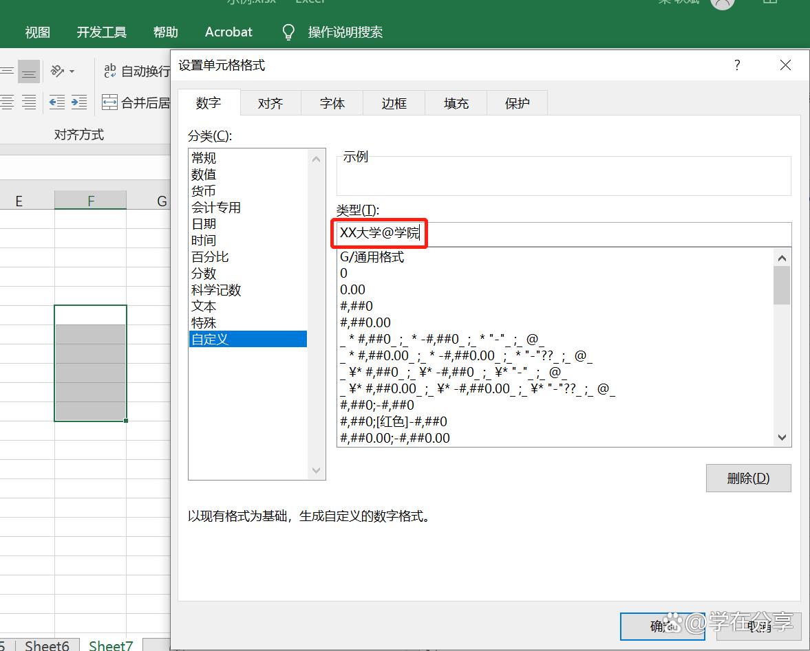 在设置自定义格式时,我们会用到这个“@”符号,在其他的应用中也是非常有用的。比如我们要输入“XX大学文学院”以及其他的学院,在自定义时我们设置“XX大学@学院”,这样在输入数据时会节省时间。