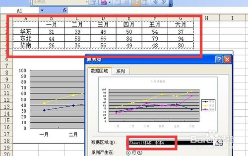 7、在图表上单击右键或者点击菜单栏 图表 数据源 弹出数据源对话框