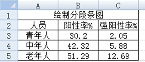 Excel 2007可以绘制分段条图,当有一个分类指标、两个或两个以上统计指标时,宜绘制分段条图,下面通过详细例子来演示Excel 2007分段条图的绘制方法。