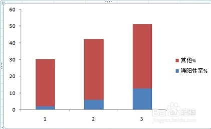 强阳性率为阳性率的一部分,因此可以将阳性率分解为强阳性率与其它两个组成部分,整个直条代表阳性率,所以该数据资料宜绘制分段条图来分析。