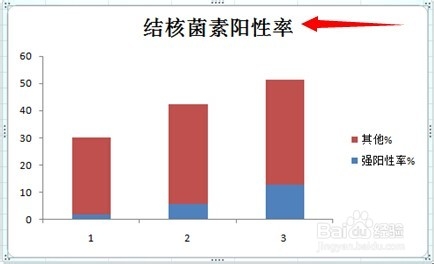 5、添加图表标题。单击图表,然后单击菜单栏选项卡【布局】/【标签】/【图表标题】按钮,此时弹出下拉列表,单击选择【图表上方】,在图表上方即出现“图表标题”文字编辑框;单击激活文字编辑,输入“结核菌素阳性率”。
