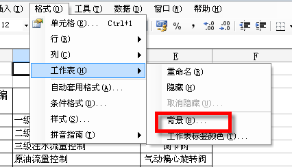 2、找到菜单栏“格式”-“工作表”-“背景...”,选择一副图片作为背景。