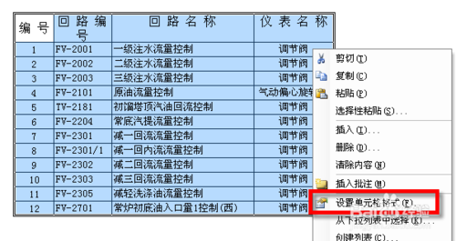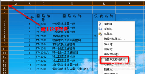 3、按下Ctrl+A或者点击表格左上角那个方块,全选表格所有单元格,右键菜单选择“设置单元格格式...”。