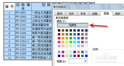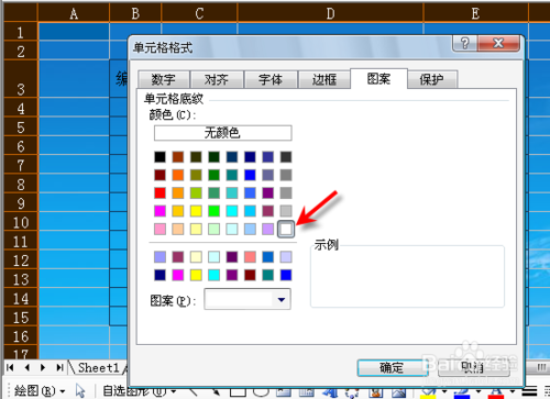 4、在“单元格格式”对话框中找到“图案”选项卡,将底纹颜色改成白色。