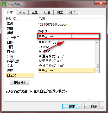 5、我们在“类型”框中添加“@qq.com”,如下: