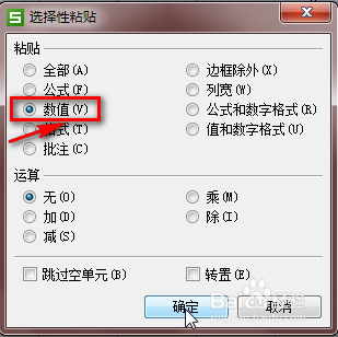 8、我们点选“数值”,再点击“确定”,如下: