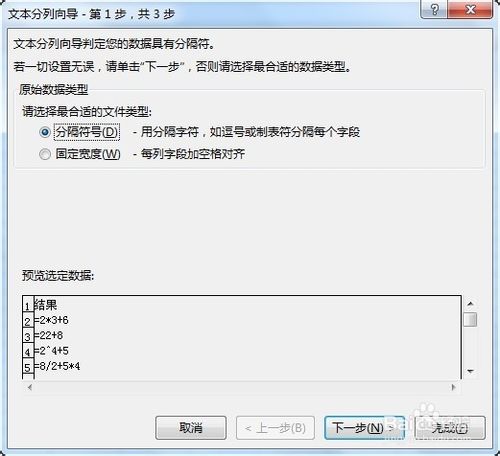 接着选中A列用数据分列法将文本算式转换为真正的计算结果,方法二已经阐述了分列过程,在此就不赘述了,详情见方法二。