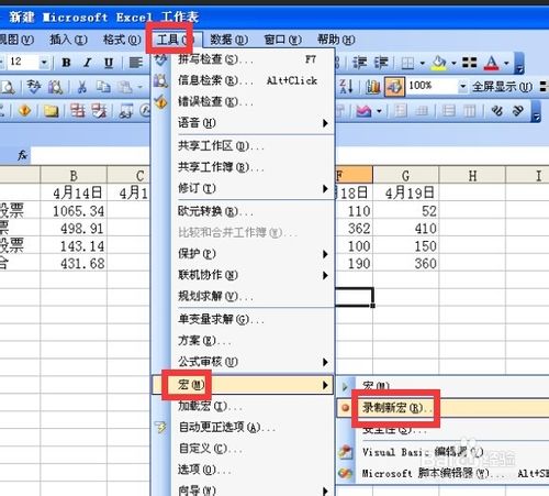 打开一个工作簿 然后点按菜单栏 工具 宏 录制新宏