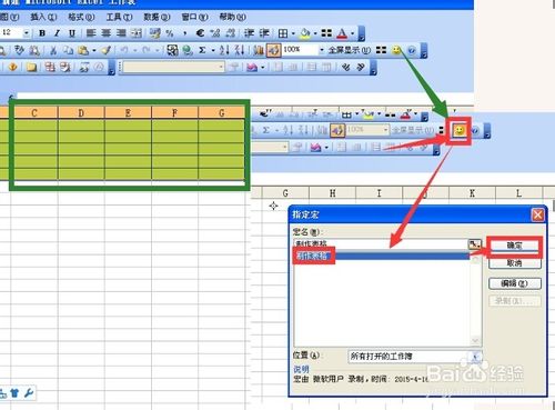 单击该按钮 弹出指定宏对话框 点制定表格 然后点确定 再次点击该按钮时 表格左上区域自动添加黄色和边框