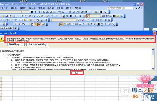 1、打开某个含有宏的工作表 会弹出很大的提示框 点按确定