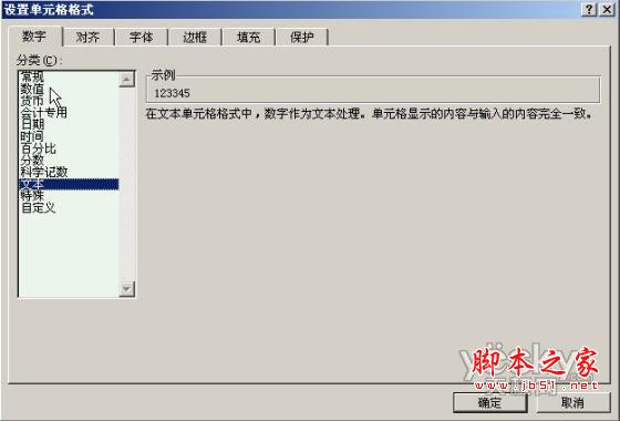 从弹出菜单中的“数字”选项卡中选择“文本”即可。