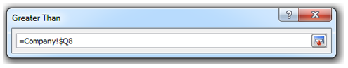 步骤2 单击对话框中RefEdit图标,导航到希望比较其中的值的工作表。本例中,导航到全公司工作表,单击部门列中第一行的平均值。