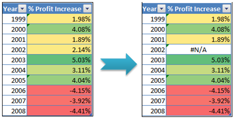 在Excel 2010中,条件格式悄悄地忽略了这些错误,继续应用条件格式到该区域中剩下的单元格。