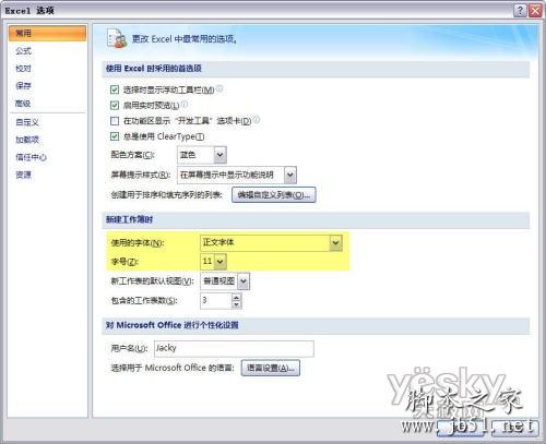 当你保存工作簿时,是否会经常将字体和字号更改为另一种大小?如果这样的话,可以将Excel的标准字体和字号更改为你所希望的类型。在“Excel选项”对话框的“常规”选项卡可以更改标准字体,如图4所示。