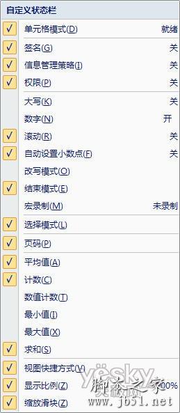 右键单击状态栏可以打开“自定义状态栏”菜单,从中可以选择状态栏中要显示或隐藏的项目,如图6所示。