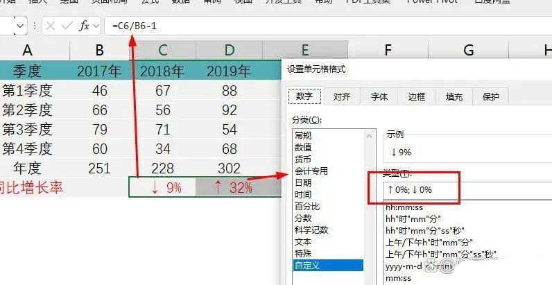 这两天决定做一个更实用的套娃柱形图,于是就在上面添加了带箭头的同比增长率。