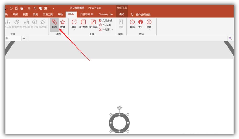 5、选中两个圆形,点击iSlide菜单下的补间。