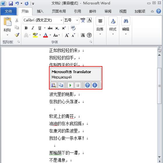 提示:只需用鼠标光标指向文字,不需点击,就会出现翻译内容,如果鼠标光标快速移开,翻译信息也会消失。