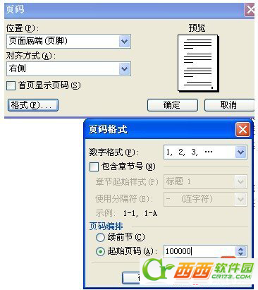 3、光标移到第三页任意位置,点击“插入-页码-格式”,格式中选择“页码编排-起始页码”为1,点击“确定”退出;