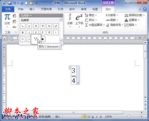 在Word2010公式中添加几何学符号