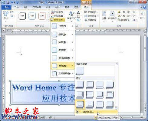 如果用户希望艺术字棱台效果进行更详细的设置,可以在棱台列表中选择“三维选项”命令。