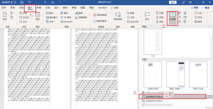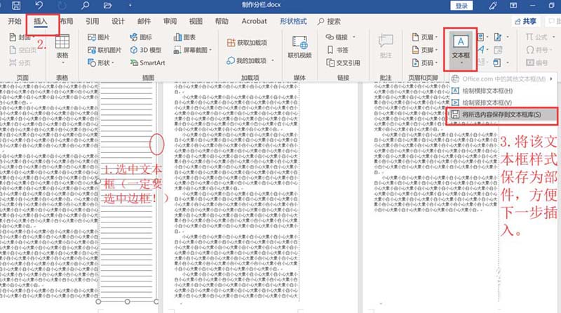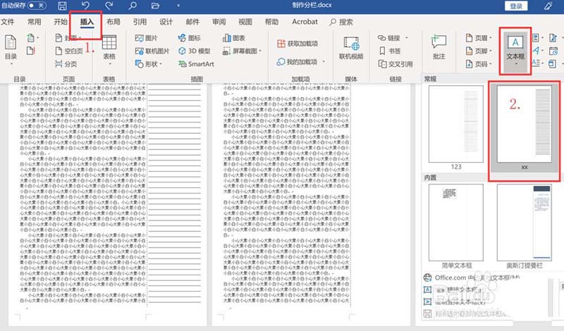 2、利用文档部件给其他页面添加分栏便条。(需要在其他页面的第一行添加哦)