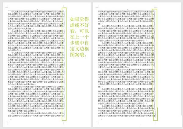 3、利用页面边框,添加竖直的虚线将便笺和正文分隔,更美观。