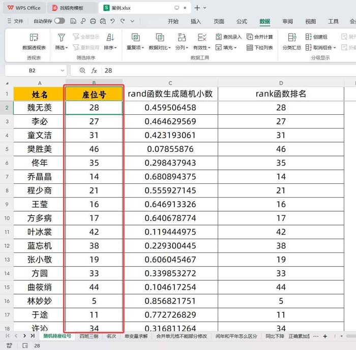 高效提升考场座位编排效率! wps快速为考生随机生成考场座位号的技巧