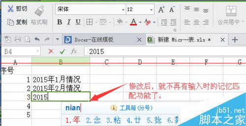 修改后,再去表格中输入相同的内容,wps表格不再有记忆匹配功能。