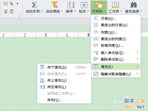 点击”开始“菜单栏中的”行和列“,选择”填充“选项中的”向下填充“。