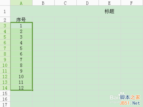 点击序号1所在单元格,按住Shift键,我们想增加12行,点击自带序号14处的单元格。选择完成。