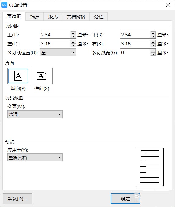 3、单击自定义页边距后,进入“页面设置”,如下图所示
