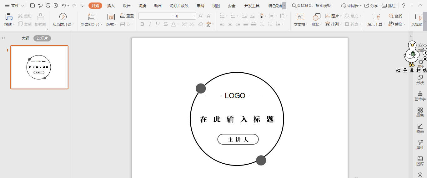 6、在圆形的中间输入封面的标题,圆形的上方可以放置公司LOGO这样黑白简单线条封面就制作好了。