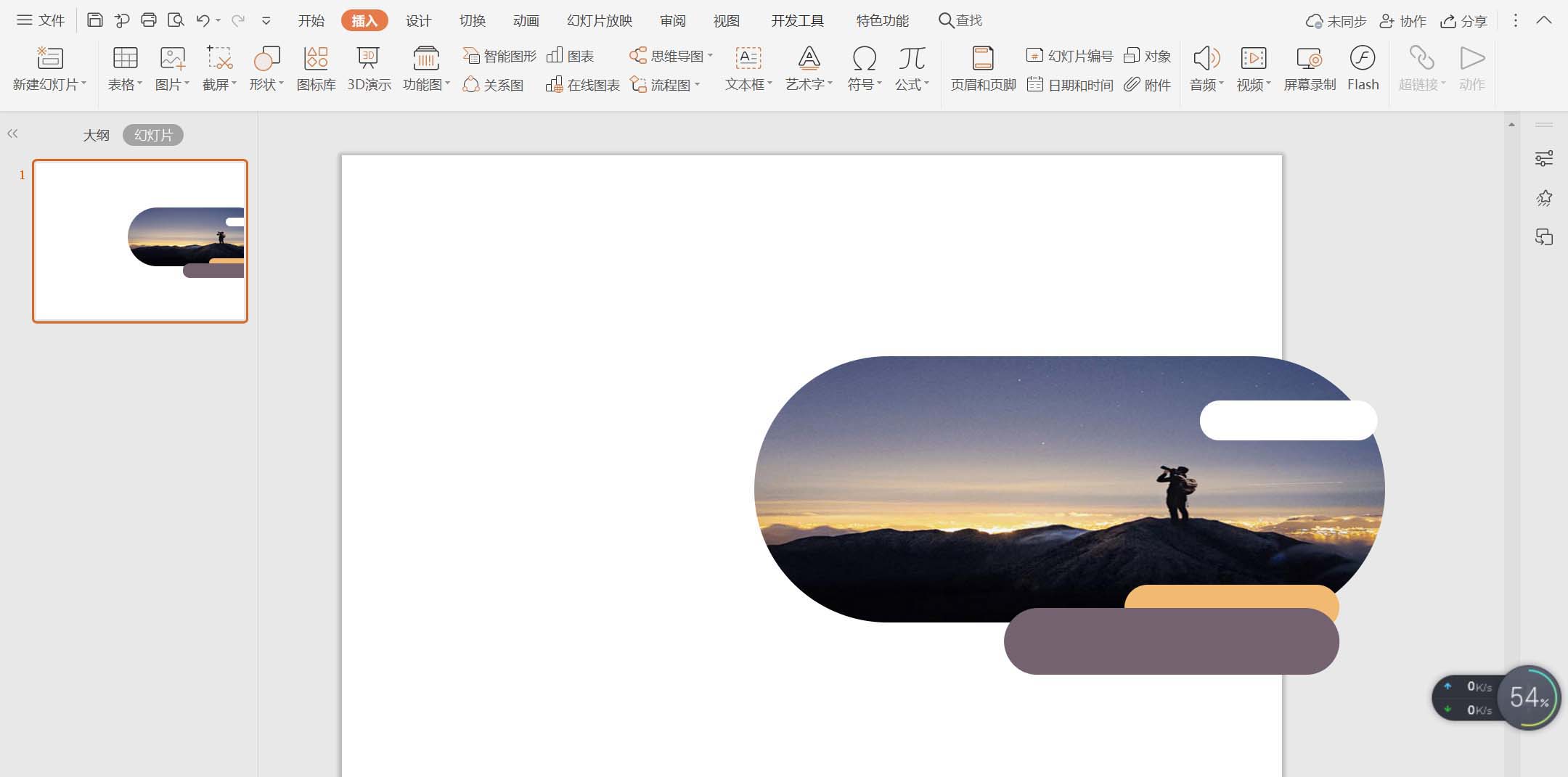 2、接着再插入一个圆角矩形,放置在风景图的合适位置。