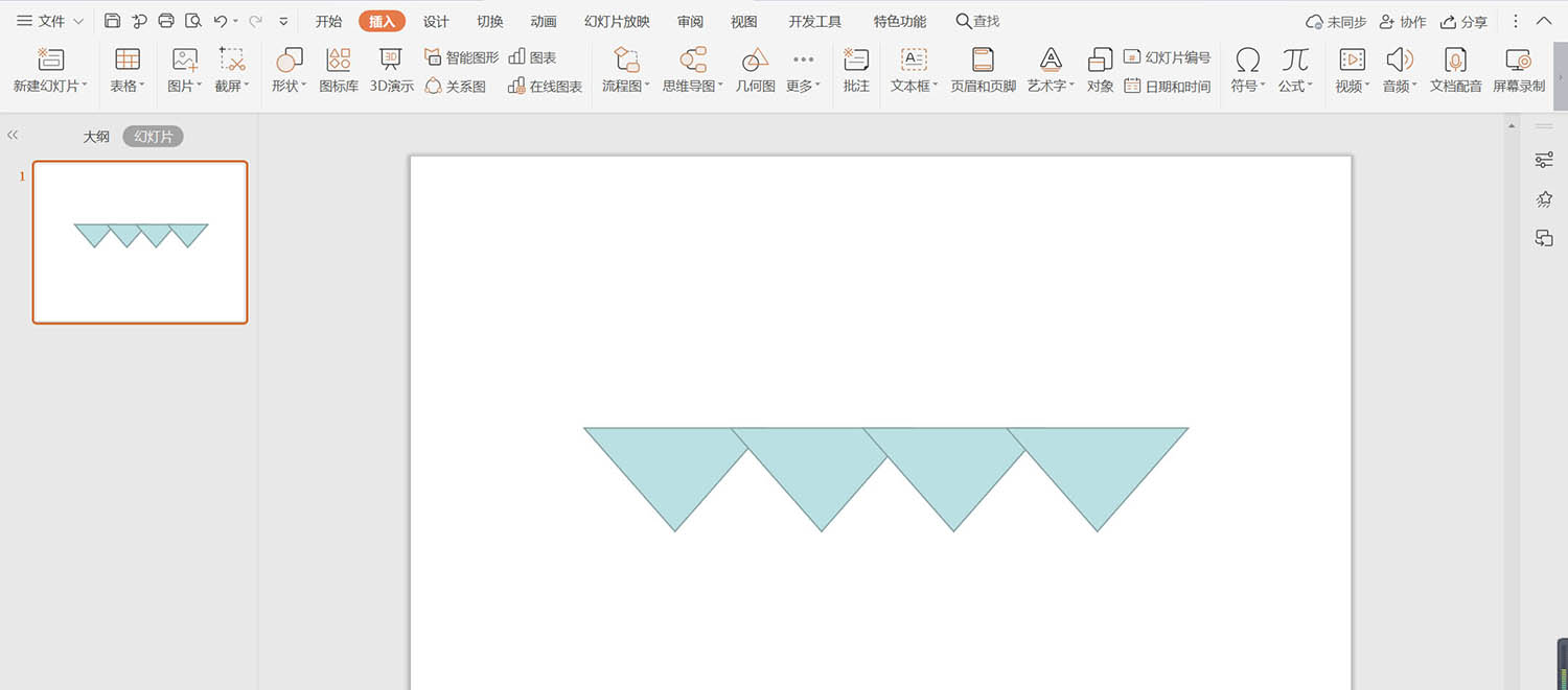 3、选中等腰三角形,按住ctrl键,鼠标拖动进行复制,摆放至如图所示的位置。