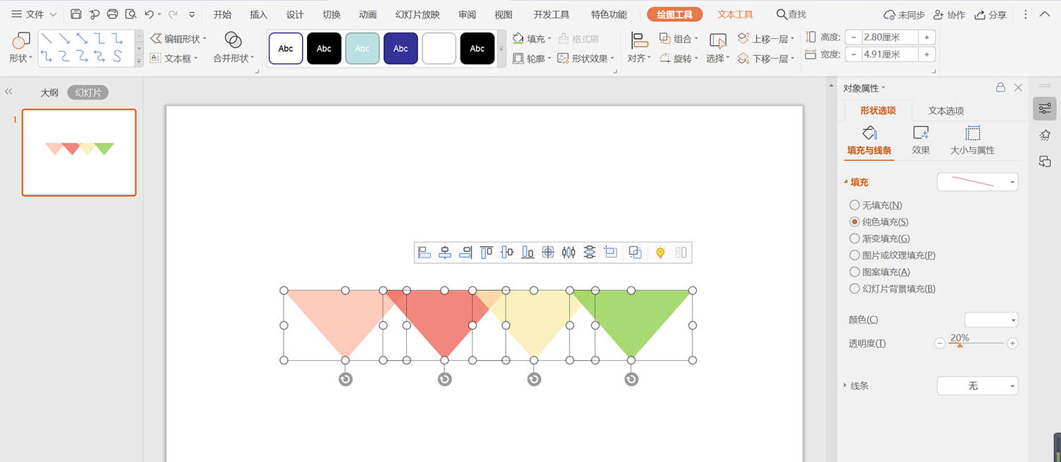 4、在绘图工具中点击填充,选择不同的颜色进行填充,设置为无边框,并调整合适的透明度。