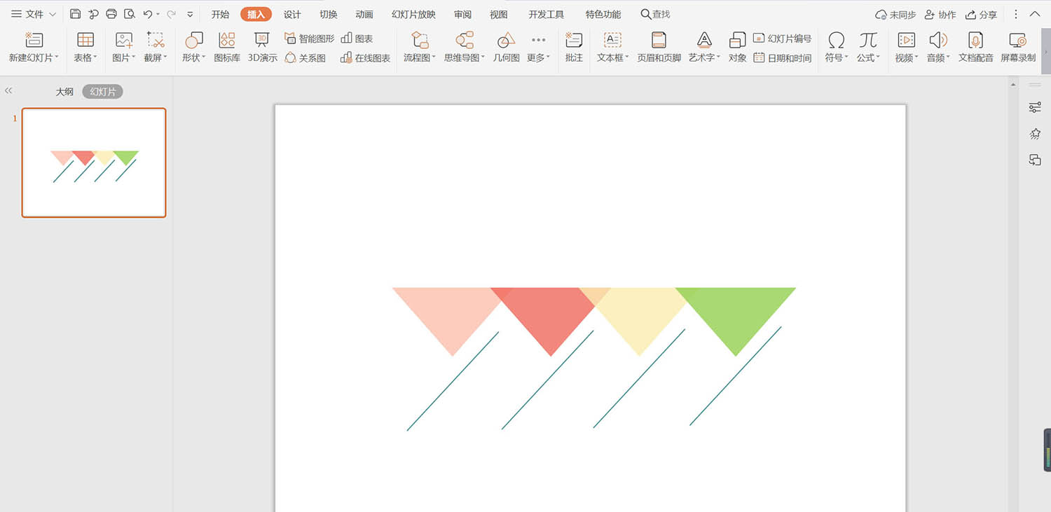 5、接着再插入长短一致的直线,放置在三角形的合适位置处。