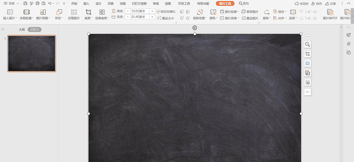 2、选中黑板背景图片,鼠标拖动调整其具体的大小,并铺满整个页面。