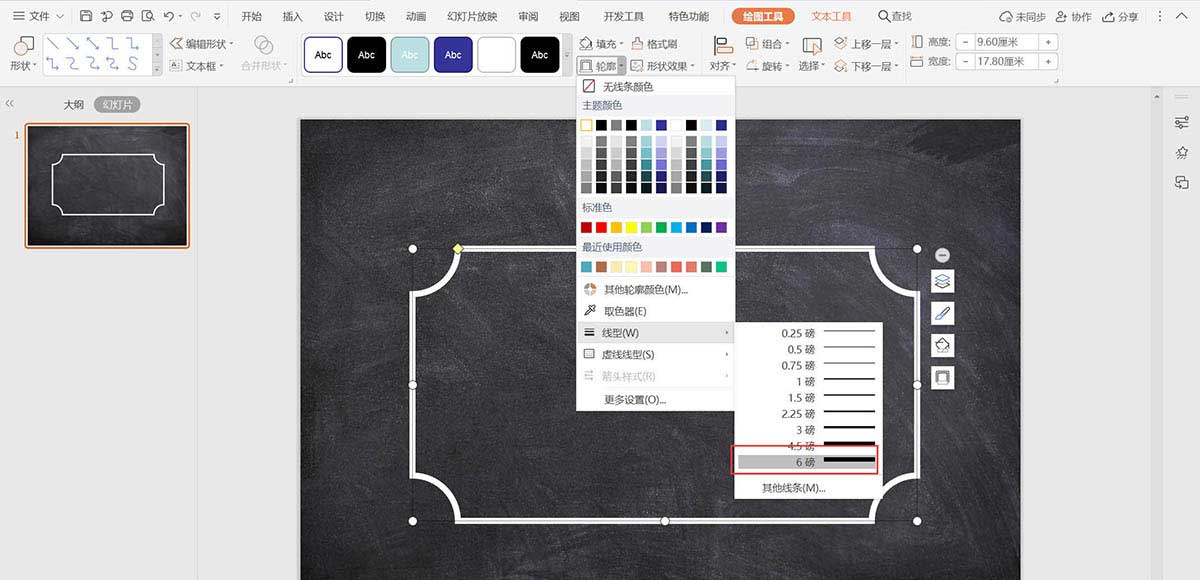 5、点击轮廓,线条颜色填充为白色,线条宽度设置为6磅。