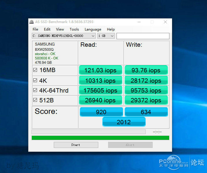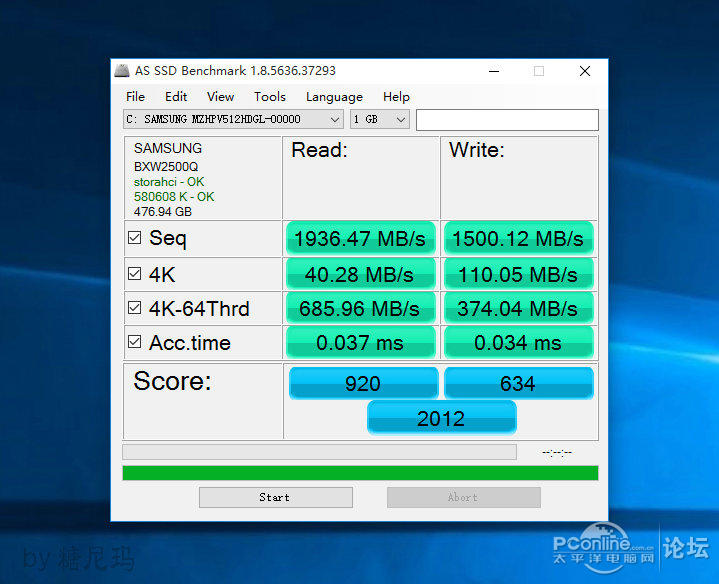 秀下三星SM951 512G的 AS SSD数据,读取近2000MB/s , 写入达到了1500MB/s