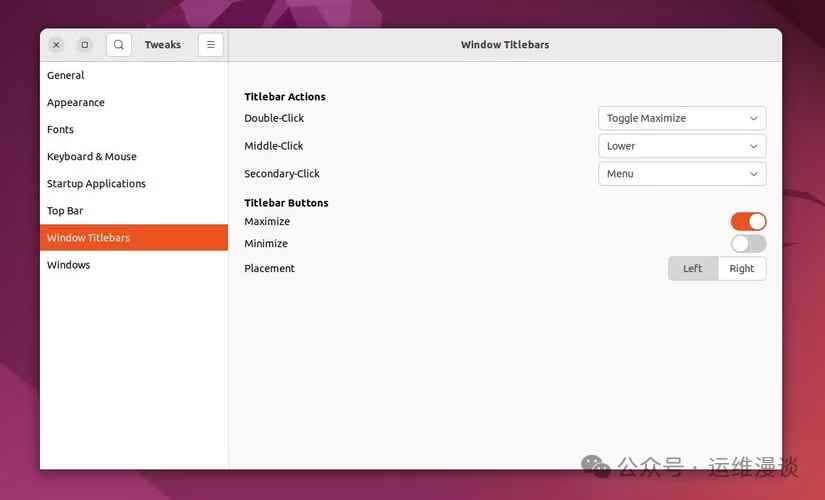 安装后打开Tweaks,我习惯把窗口标题栏加回最小化/最大化按钮,调整系统字体为更清晰的Noto Sans系列,还能微调面板位置。