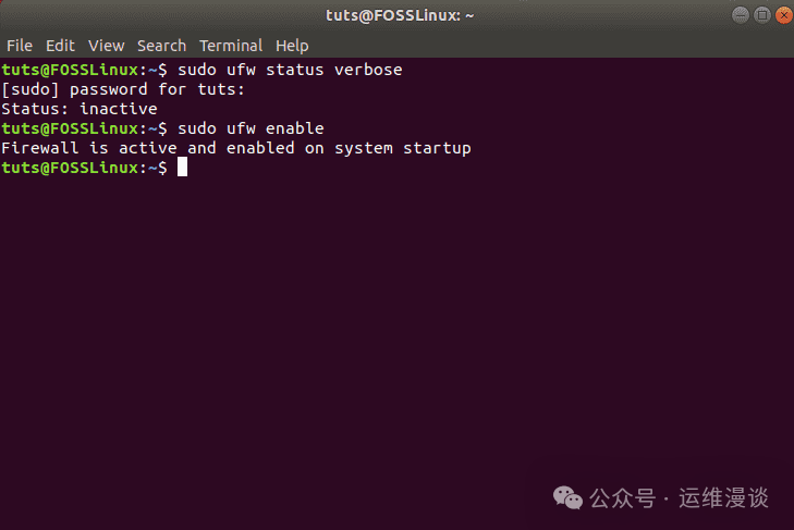 桌面版Ubuntu默认不开启防火墙,但如果你偶尔跑SSH、Web服务器,或者追求更高安全,建议立刻启用UFW(Uncomplicated Firewall)。