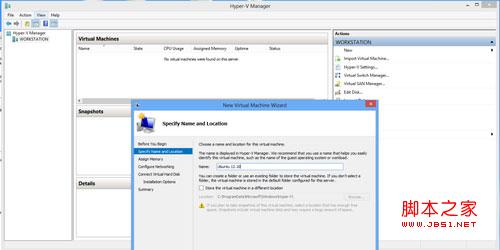 从Windows 8的Hyper-V管理器中,创建一个新的虚拟机。打开Windows 8的Hyper-V的向导,我们首先需要给虚拟机命名描述性名称。我们就安照安装的版本命名为Ubuntu 12.10。