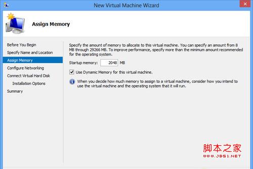 安装向导有非常清晰的步骤引到,命名完成后,我们需要做的就是内存分配。在这个例子中,我们为虚拟机分配了2GB的内存。