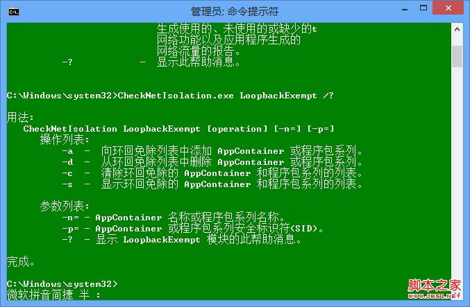 要删除某个豁免,将添加豁免的命令中的 -a 参数换为 -d 即可,要快速全部清除列表内容,执行"CheckNetIsolation.exe LoopbackExempt -c"。