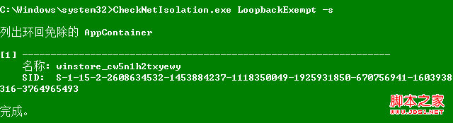 要验证豁免列表,我们使用"CheckNetIsolation.exe LoopbackExempt -a -s"命令即可: